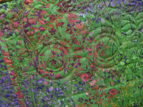 The background fabrics are from "Olivera" a new line of Island Batik fabrics. My "Island Batik" scrap bin held the secrets to creating these fun creatures.